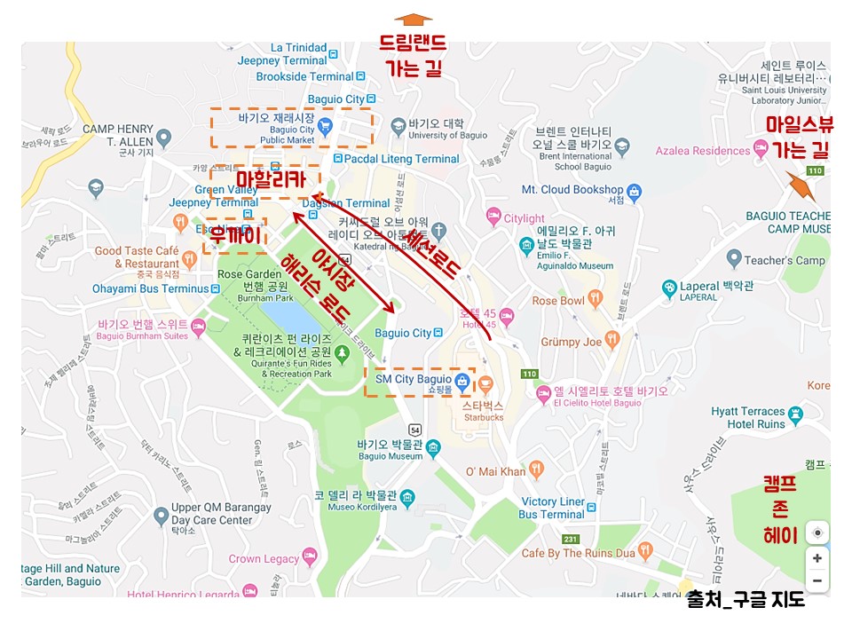 - 위치: 도심 남동부 쪽에 위치한 바기오 최대의 리조트로 도심에서 멀지 않고 택시로 20분 정도면 도착 가능.